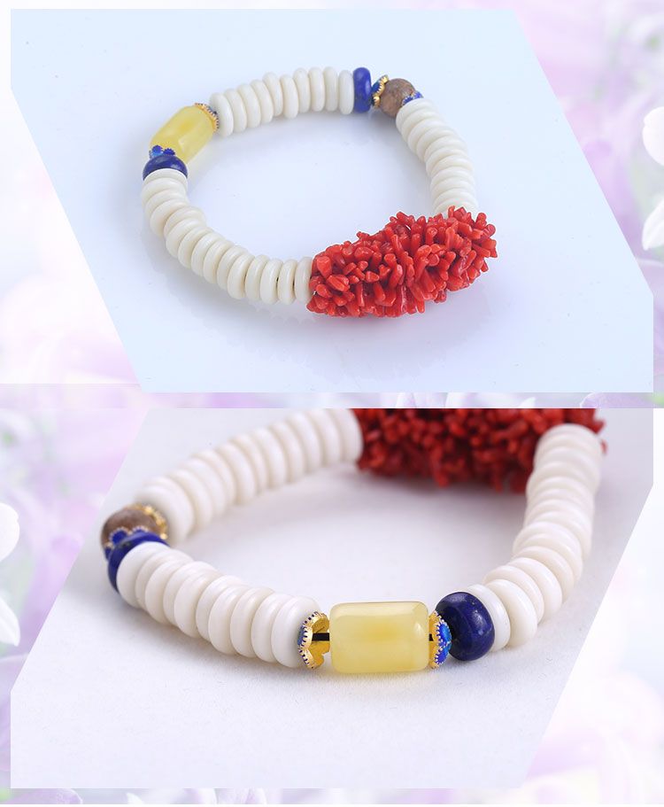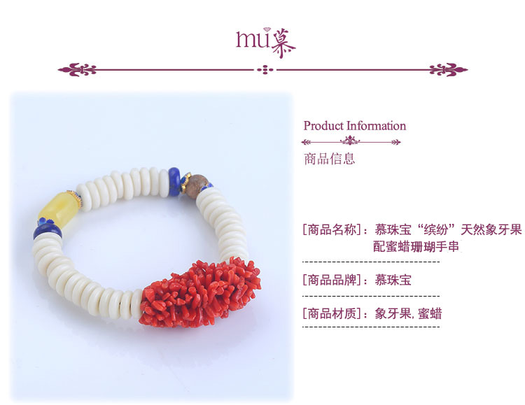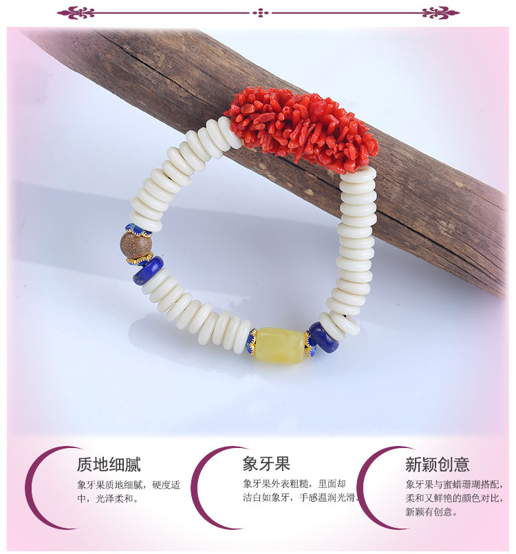 慕珠宝|木手串/把件,-慕珠宝 “缤纷”天然象牙果配蜜蜡珊瑚手串