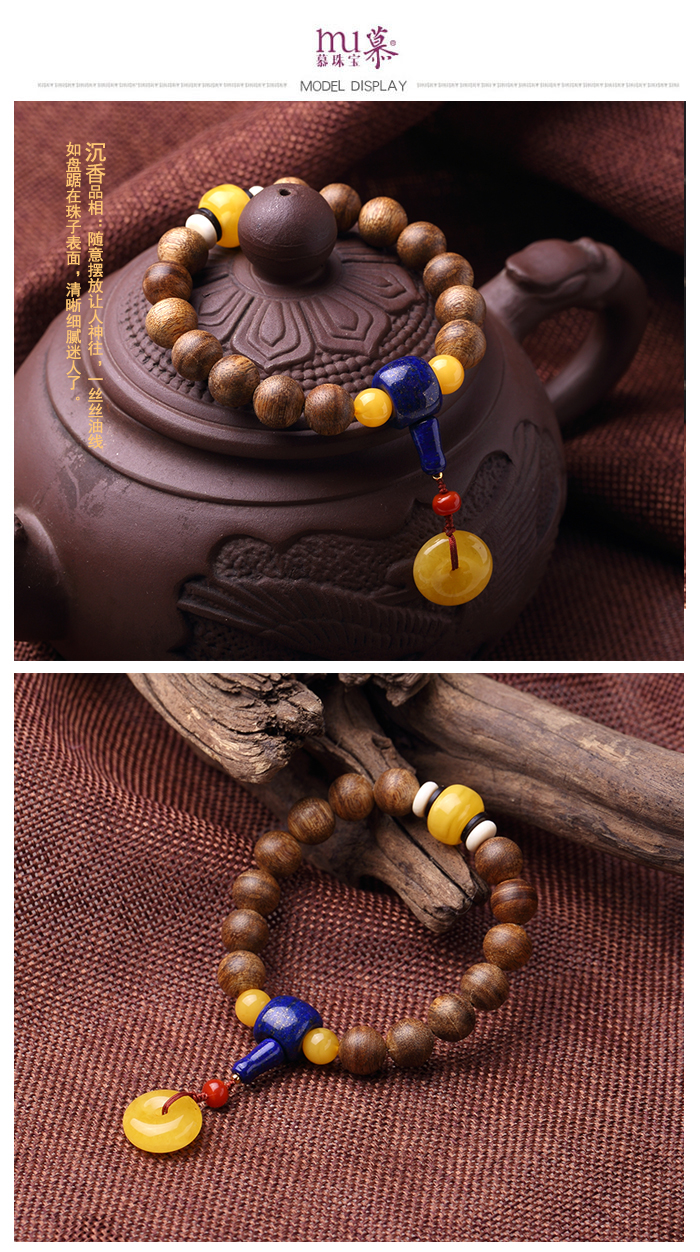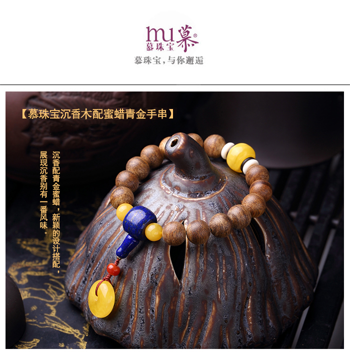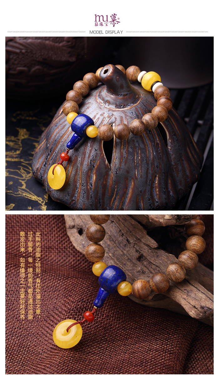 慕珠宝|木手串/把件,-慕珠宝 沉香木配蜜蜡青金手串