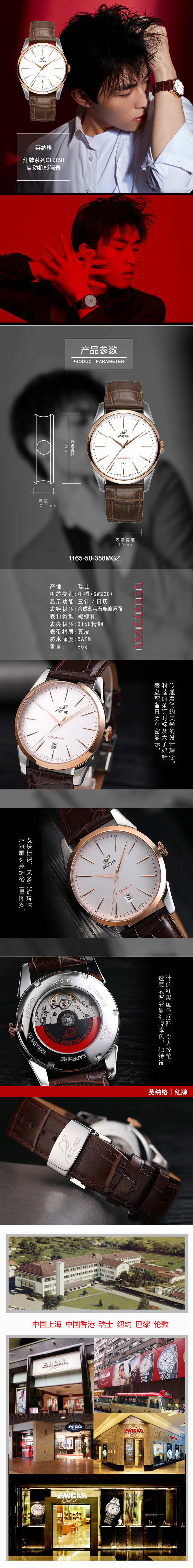 英纳格(ENICAR)|男表,-英纳格(ENICAR)红牌系列1165-50-358MGZ自动机械男表