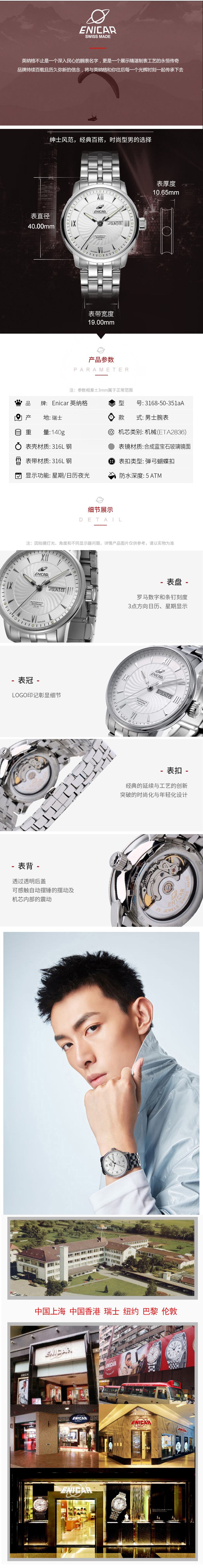 英纳格(ENICAR)|男表,-英纳格(ENICAR)3168-50-351aA自动机械男表