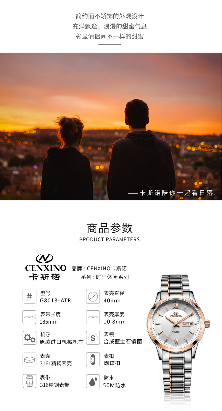 卡斯诺(CENXINO)|男表,-卡斯诺(CENXINO)浪漫情侣系列石英男表(G6075-WB)