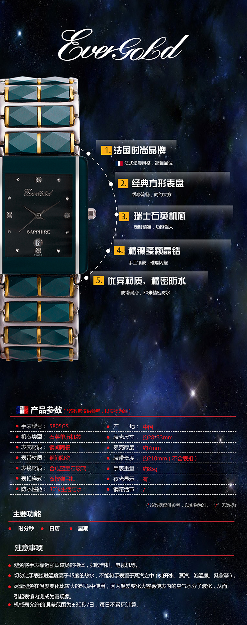 EVERGOLD|男表,-EVERGOLD瓷艺系列石英男表5805GS