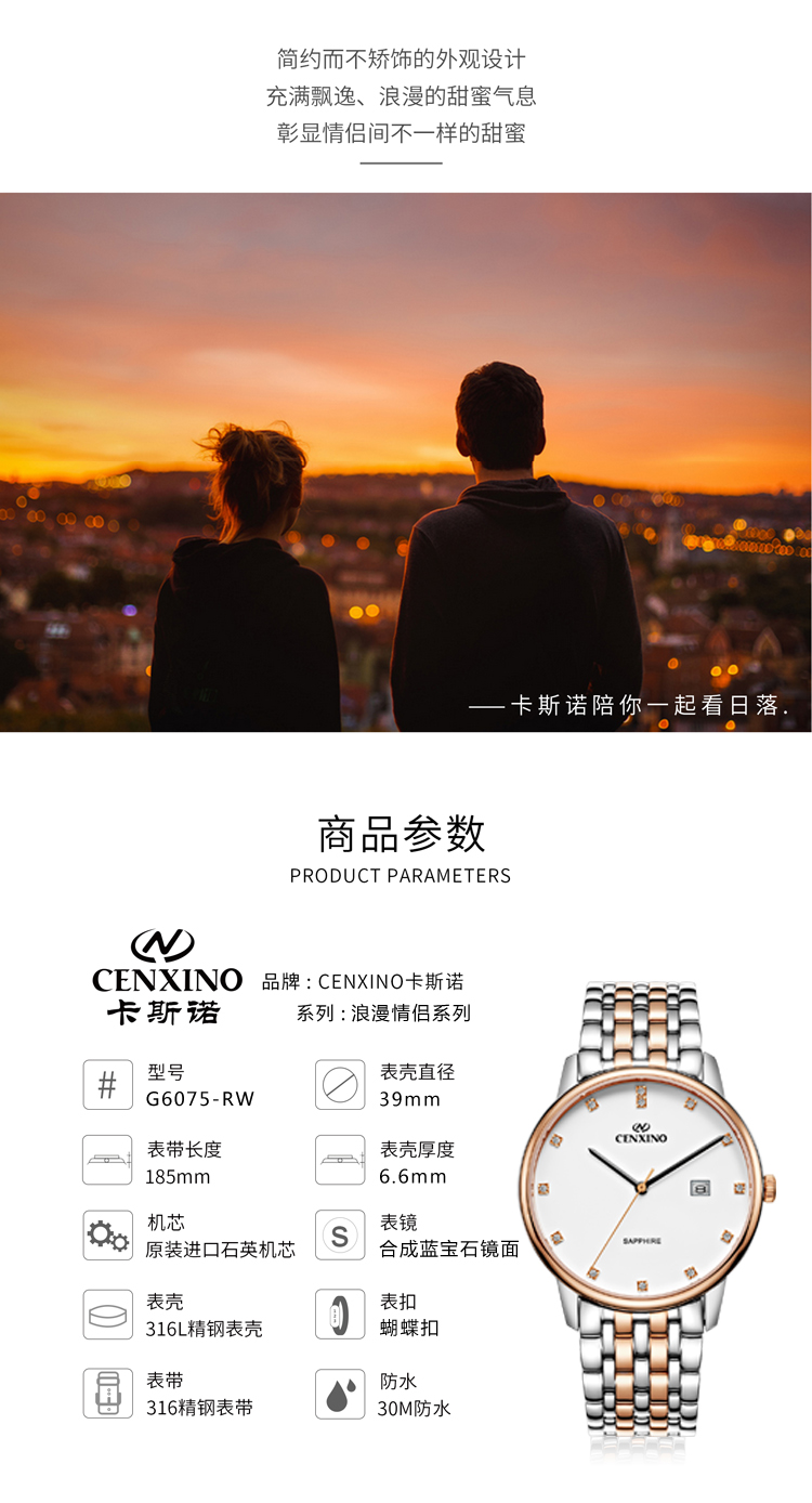 卡斯诺(CENXINO)|男表,-卡斯诺(CENXINO)浪漫情侣系列石英男表(G6075-RW)