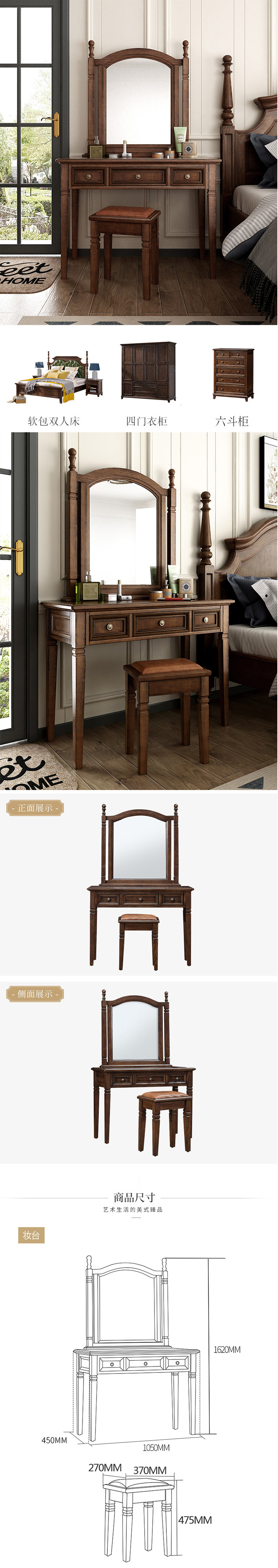 侯门|电脑桌椅,-侯门 美式实木梳妆台组合19M